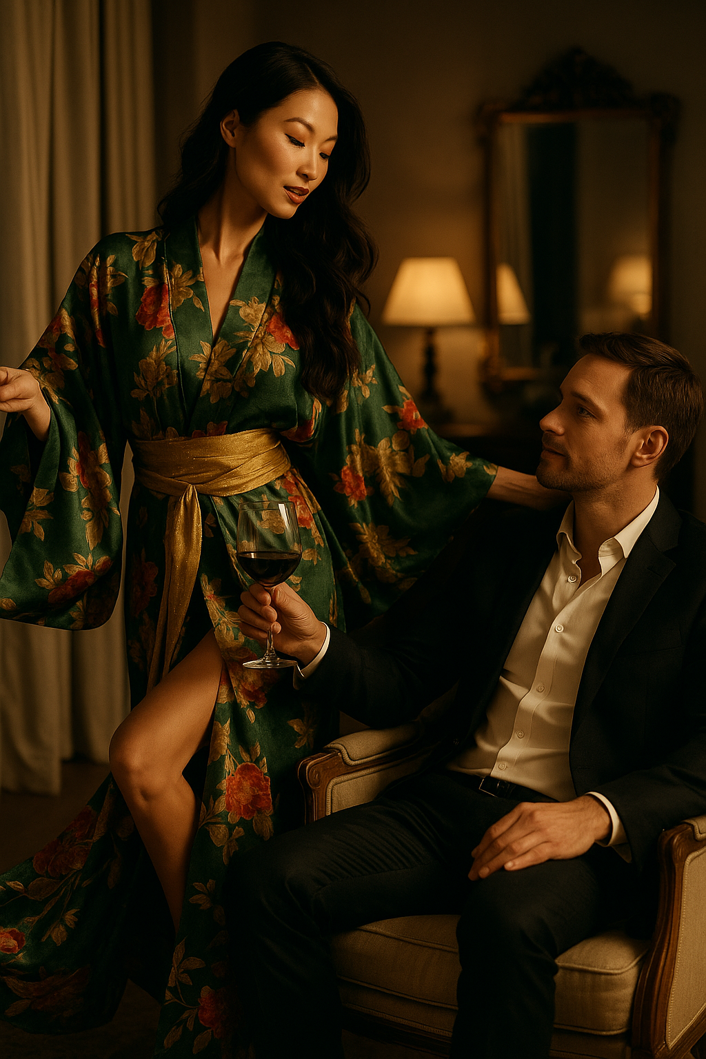 A great Courtesan brings beauty and eros into the mundane: the way she pours wine, places her hand, laughs at just the right moment, or even mocks the seriousness of the moment to break the tension. Her body-language is masterful — soft eyes, subtle touch, cadence of voice.